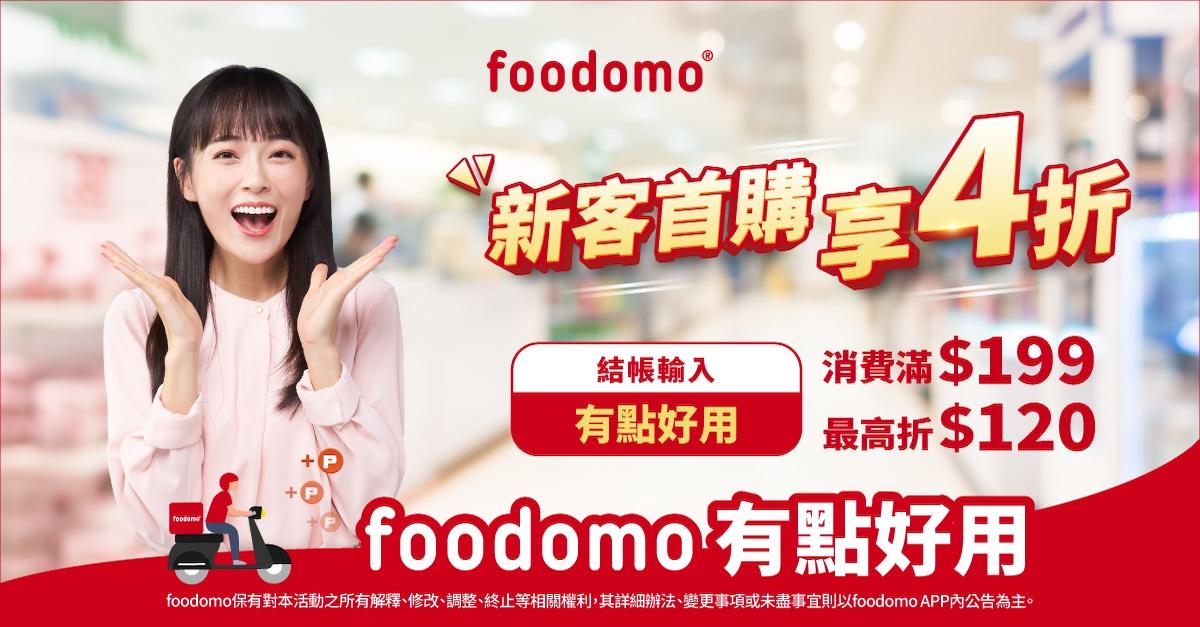 即日起至 10/31 前 foodomo 新客首購輸入【有點好用】享4折優惠,最高現省120元,統一集團商品外送最划算!